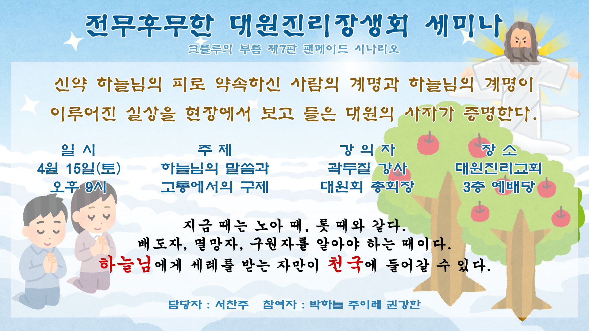 한 달 전, 찬주가 신학 스터디를 시작하면서 일도 그만두고 자연스럽게 연락이 끊어졌습니다.